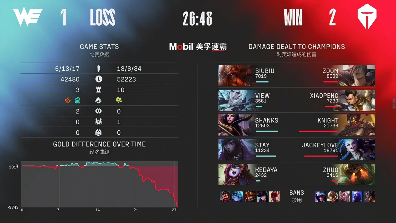 而且之后WE反身还拿下了第二条峡谷先锋,TES这一波非常亏。