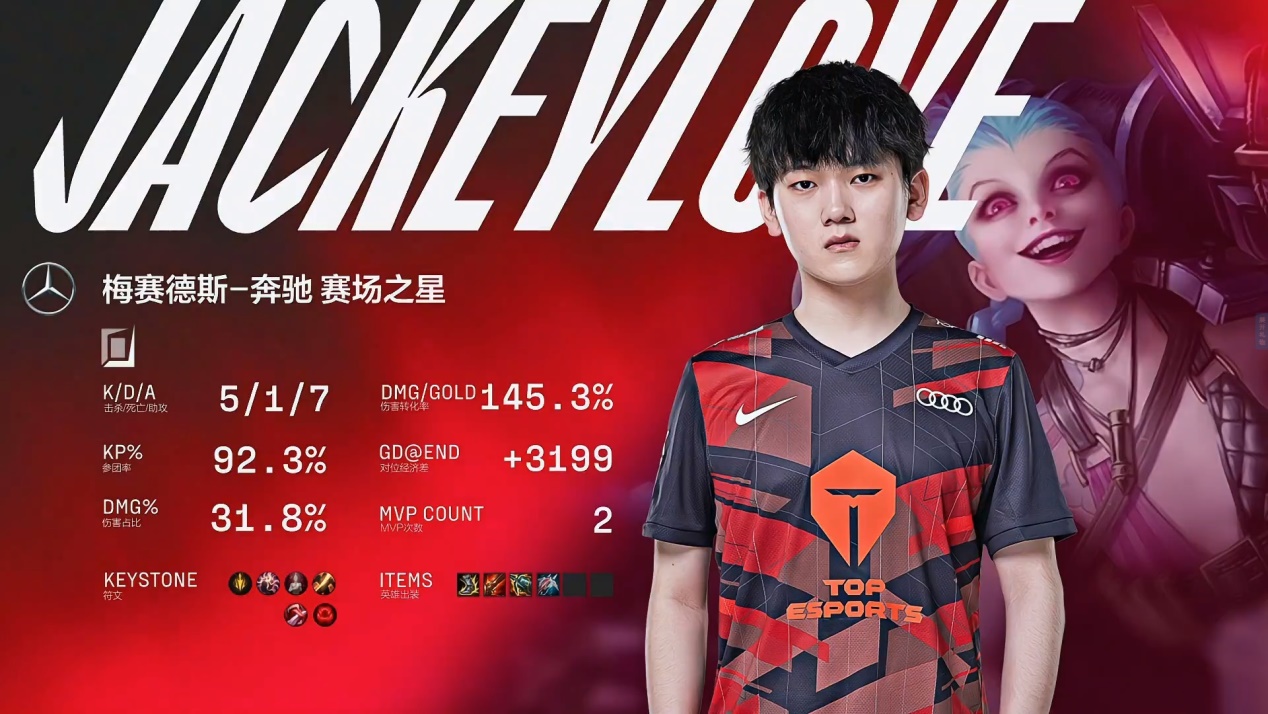 Zoom在第二场比赛选出的鳄鱼就在逆境的情况下多次站了出来帮助TES战队稳住局势,关键的一波大龙团战中Zoom直接单人冲阵配合队友先击杀了厄斐琉斯,他也顺利地拿下了MVP。