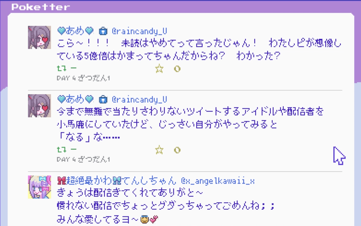 行动结束之后,可以在社交媒体上查看她大号(超天酱)和小号(糖糖)上的发言。这也是游戏中的重要部分哦。
