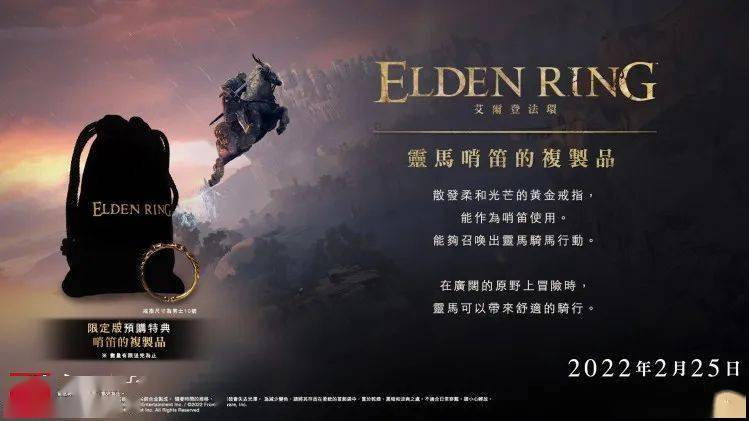 于实体通路预购《艾尔登法环》限定版的玩家可获得限量铁盒及灵马哨笛的复制品。