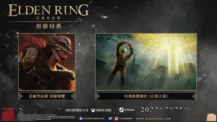 首批购买《艾尔登法环》实体版或预购《艾尔登法环》数字版的玩家可获得以下特典: