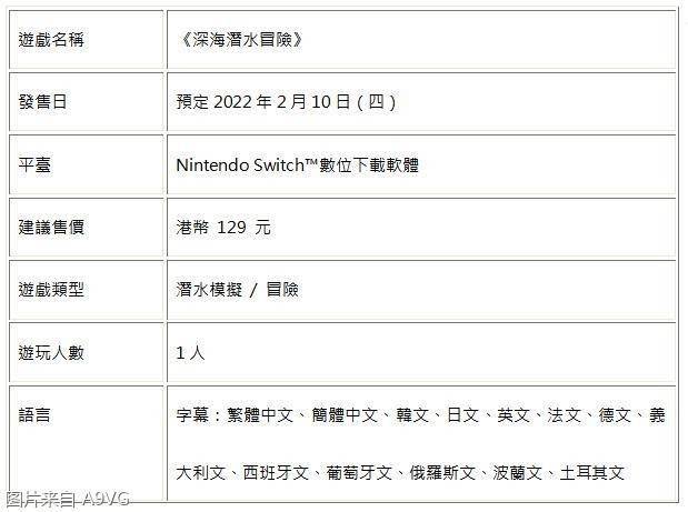 亚克系统(ARC SYSTEM WORKS)亚洲分店宣布, JUJUBEE S.A. 的潜水模拟游戏,《深海潜水冒险》 Nintendo Switch™ 繁体中文版将在 2022 年 2 月 10 日(四)上市,并公开游戏资讯及繁体中文版游戏画面。