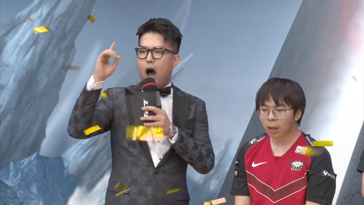 结果昨天余霜在介绍V5和TES两支战队登场之后,最后一句话突然大脑短路忘词了。