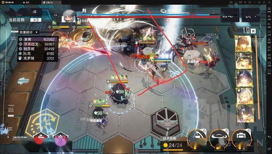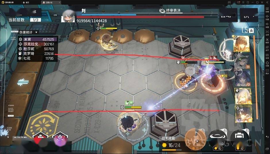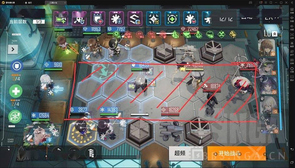 如果你的练度不是很高(比如像我这样),可以后排再带若干名T/输出,万一被打残了可以轮换一下,避免进boss关的时候状态太差。