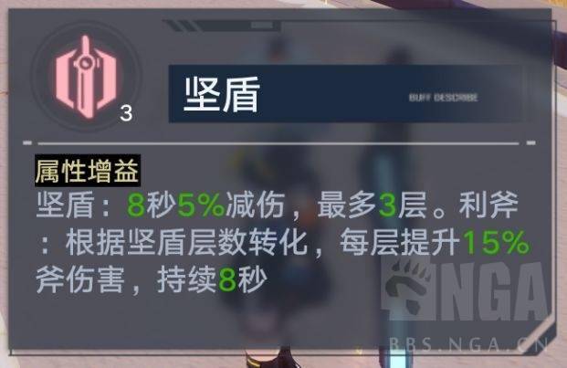 1、盾斧是一把速切爆发武器,1星后的完整循环是闪A 3次叠buff,之后开1技能爆发(增伤同样作用于1技能的伤害和破盾能力),接平A、闪避A、空A重攻击打完buff后切走;