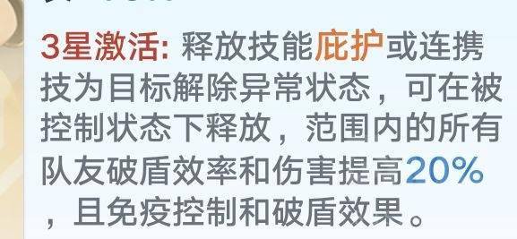 2、1星后1技能有助于破盾,增幅30%全队受益;
