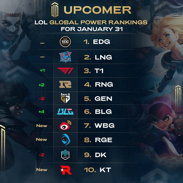 大家期待的UPCOMER全球战力排行榜,在本周发布了最新一期的排名,让我们一起在这个春节里找些乐子,看看外国媒体如何看待四大赛区的队伍实力。