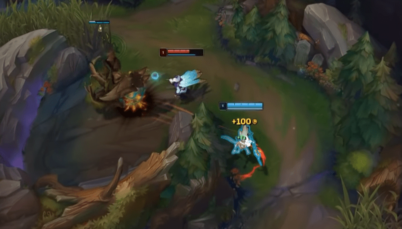 这个时候迦娜去中路帮助中单队友推线,然后普攻防御塔拿到窃法之刃的被动赏金。对方打野失去第一个BUFF,清野速度肯定变慢,迦娜可以配合队友去反另一个野区,控下河蟹,甚至对下路发起越塔强杀。