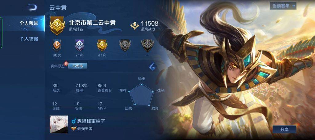 从云中君砍完开始玩,到现在大大小小有一千多场。被这英雄的独特机制吸引,刚开始就觉得很快乐,看到胜率还可以,遂作本命一直玩到现在。