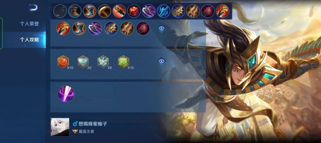 这是我自己用的,铭文八狩猎24攻速。前期红buff两次撕裂加两个二技能就能打完,刚好升二级加一技能续飞,可以进蓝区或者抓下,或者搞对面中辅等等;试过夺萃,打架挺猛,但飞得太慢,个人感觉磨磨叽叽的,十分不舒服,有时候抓马克就差那点移速(主要是不方便吃线)。