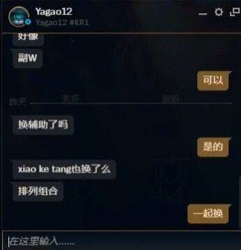 但能看得出来TES确实是换了辅助,因为还有下面一段和Yagao的对话,确认了TES不仅更换了辅助,而且上单也要换人。