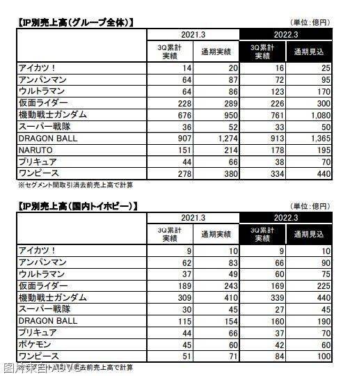 万代南梦宫21-22财年Q3财报 新大型作品投入增加
