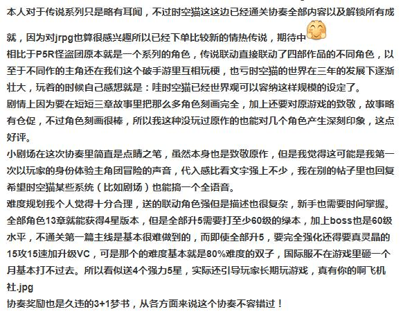 从联动内容上来看,这次《另一个伊甸》和传说系列的联动确实让双方的玩家们心满意足。游戏日报君甚至发现,联动的内容才出后不久,贴吧上就有玩家做出了前后接近1000字的攻略和评价,可谓是火爆十足了。