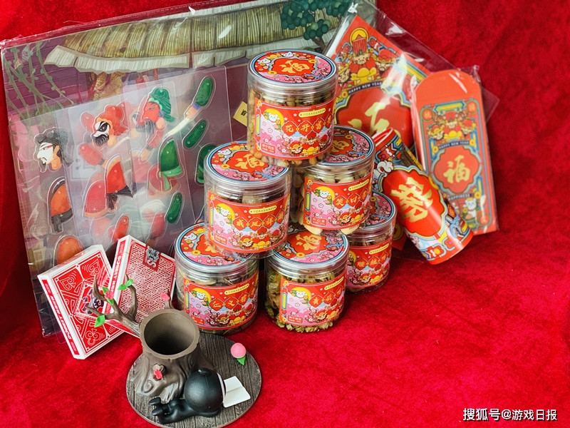 最后吃的玩的和红包春联自然也少不了,瓜子、腰果、青豆、夏威夷果、笋干花生、开心果等等,过年可以吃个够了。还有两副带着福字的多功能卡牌,要是大家过年想玩三国杀,直接节能线下开玩,边吃边玩才是年嘛!