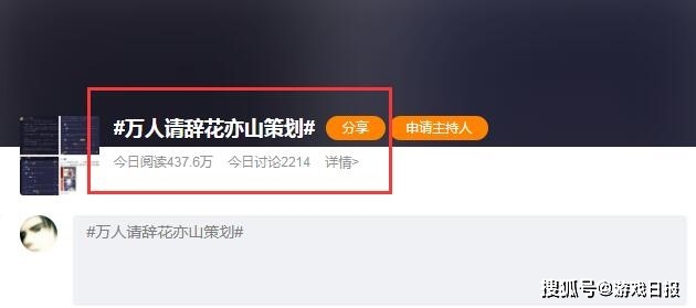 【朝夕光年《花亦山心之月》活动引玩家不满】 朝夕光年旗下的女性向手游《花亦山心之月》因新春活动引起部分玩家不满,有网友发起了一个“万人请辞花亦山策划”的话题。截至发稿前,该话题在微博上的阅读量已超430万,讨论量也超过了2000条。