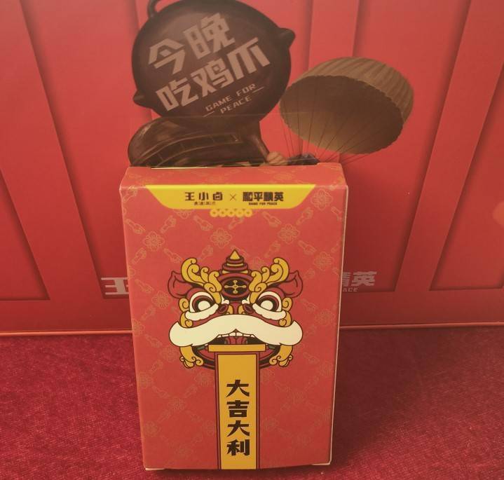 而这次新春礼盒选用的是和平精英常用的外观“空投箱”,选择的是与王小卤合作款,大概光子早早就看透我是个吃货了。U1S1,天天在某短视频平台看到王小卤的广告,但不怎么喜欢网上买东西的老鸡腿,到现在都还没尝过是什么味道。