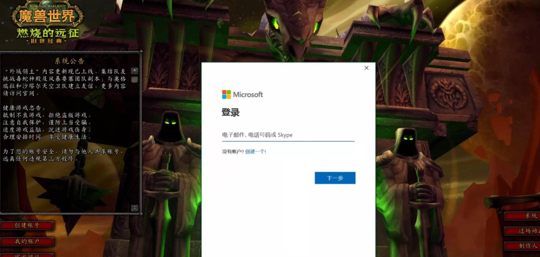 02 请使用“微软账户”登陆《魔兽世界》