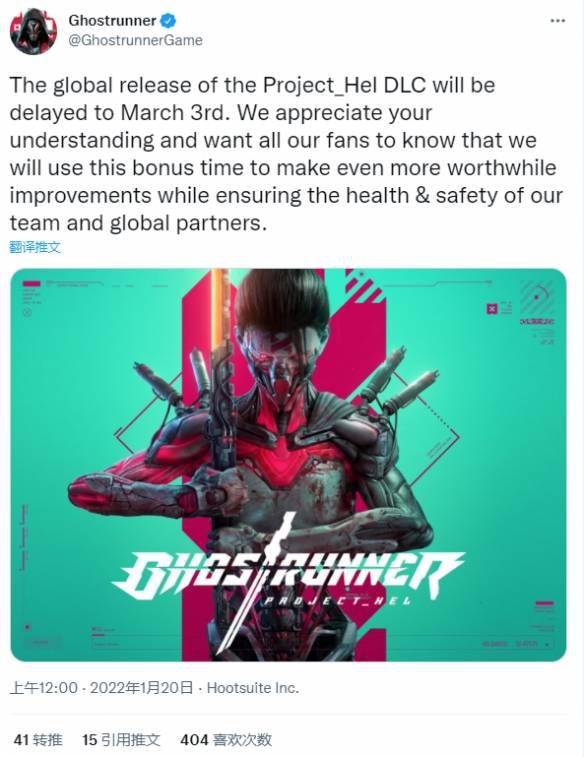 《幽灵行者》官推发布公告,终极DLC“Project Hel”跳票至3月3日!
