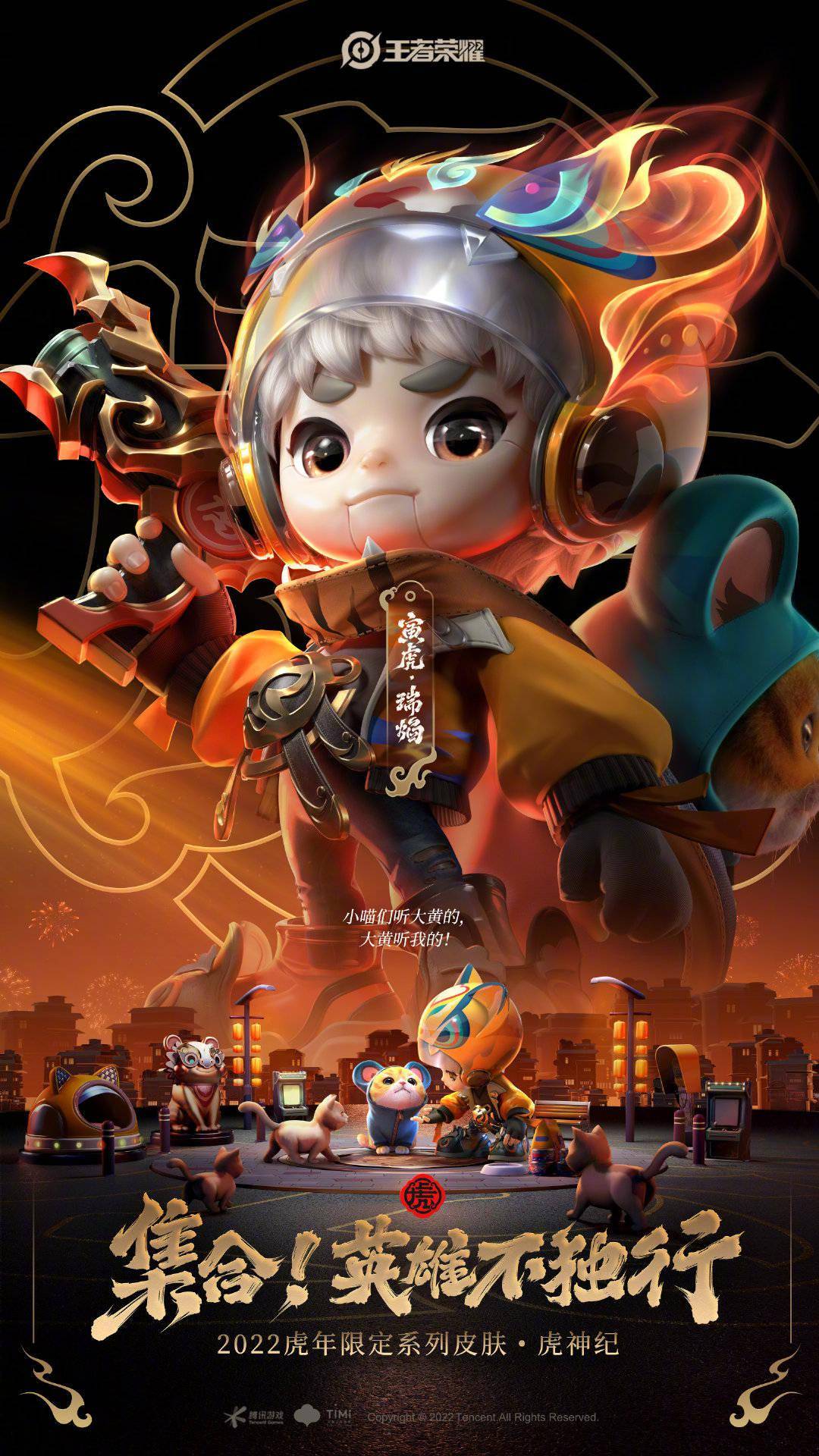 《王者荣耀》官方公开了虎年限定皮肤虎神纪CG——《集合!英雄不独行》,与皮肤宣传海报。系列皮肤售价、品质等相关情报官方将于后续发布。