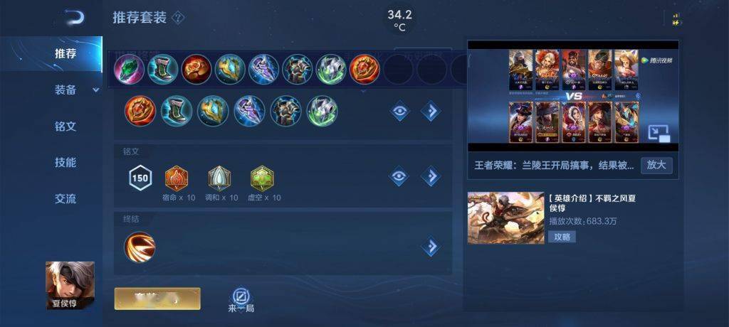 玩法思路:辅助流夏侯,带斩杀技能(带干扰作用不大,本身控制链足够不用带眩晕)开局帮中路抢线,推荐点一技能。