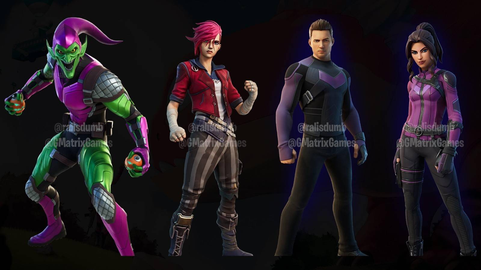 近日,Epic旗下知名逃杀游戏《堡垒之夜》全新联动内容遭到了泄露,本次曝光的联动内容包括知名MOBA游戏《英雄联盟》衍生剧集《双城之战》中的主人公蔚,漫威漫改真人影视剧集《鹰眼》中的鹰眼与凯特·毕肖普以及漫威漫画中的经典反派绿恶魔。