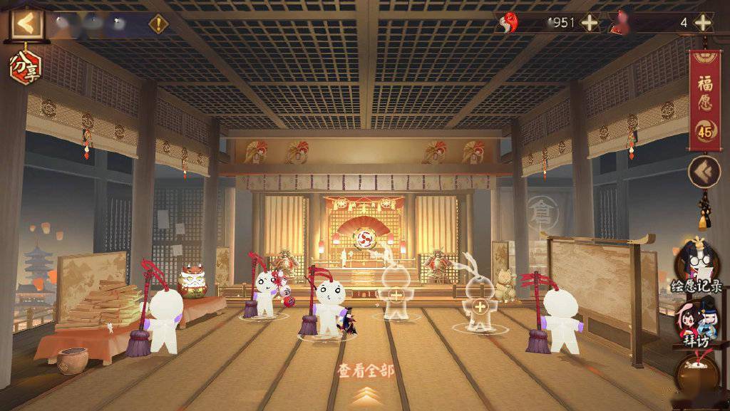 拜访:活动期间,每日都会有被派遣而来的小纸人为大人送上新的小纸人外观和祝福。大人亦可拜访好友、式神或者阴阳师的绘愿屋,查看他们拥有的小纸人和祝福。还可在拜访期间,向他们派遣自己制作的小纸人并送上祝福。