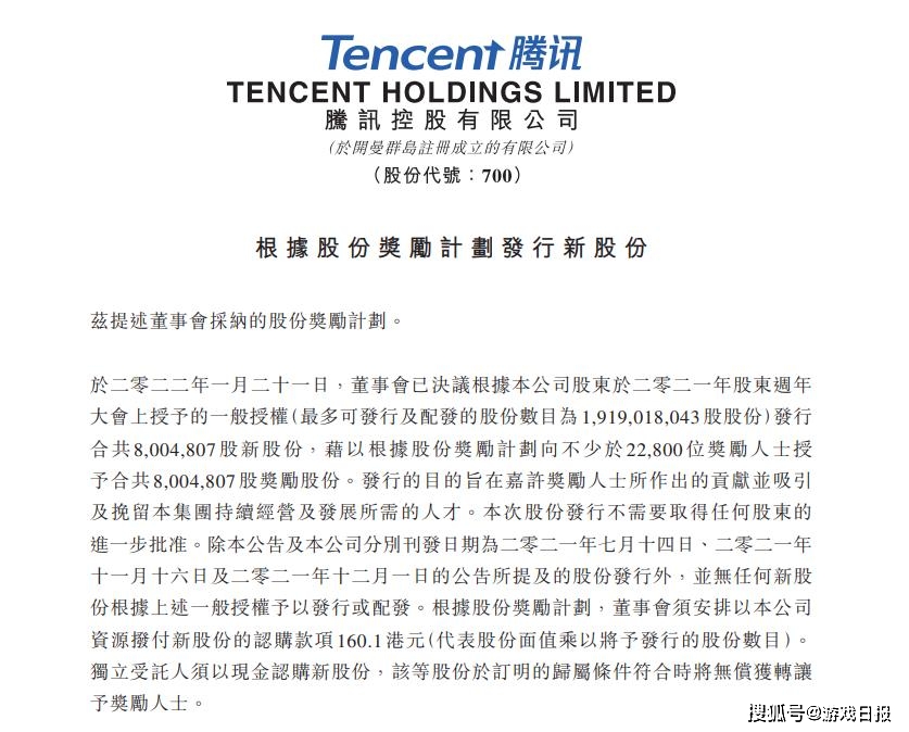 而在2021年7月、11月、12月,腾讯也曾表示对相关员工发放股票奖励。以12月为例,腾讯发布公告称向不少于25700位员工奖励4410829股股份,人均可获约6.5万元人民币。
