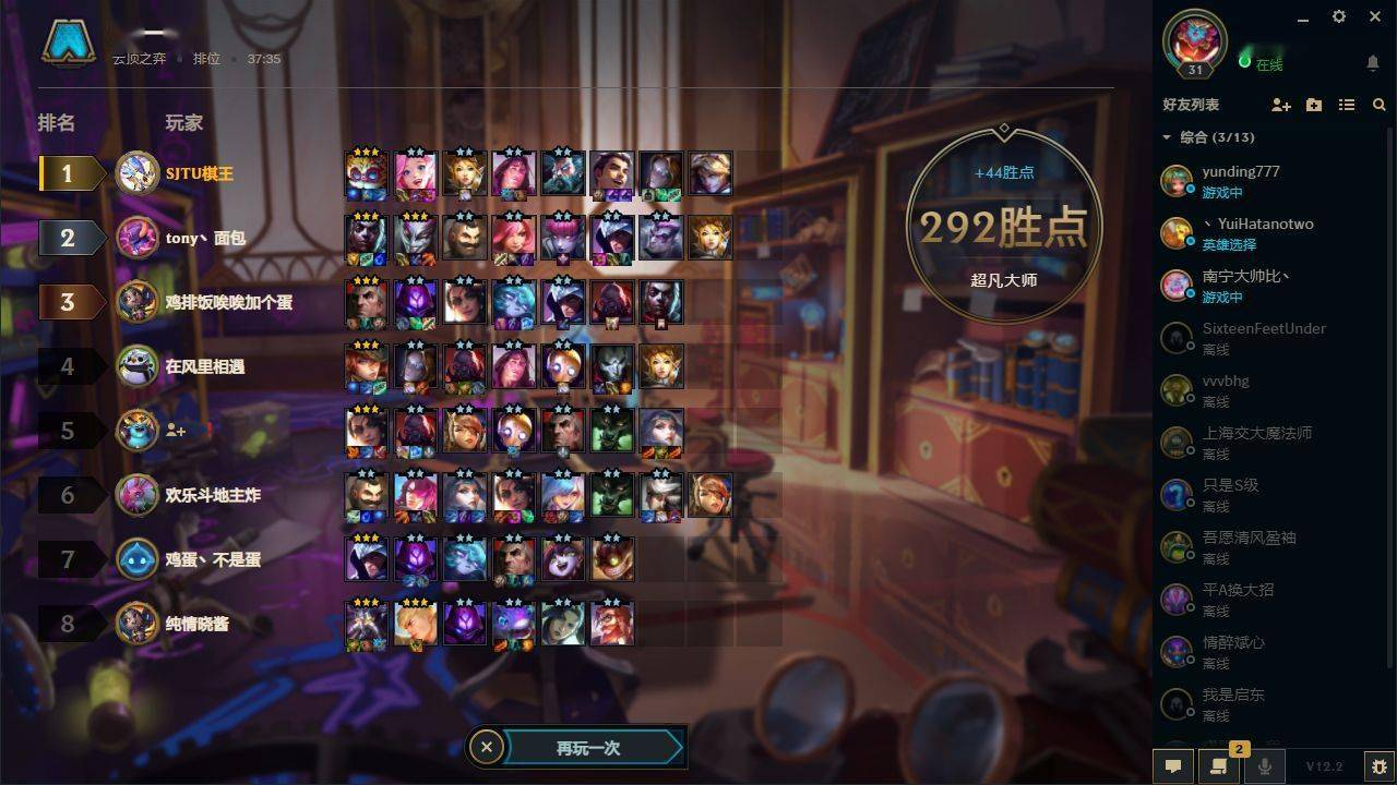因为最近放假天天下云顶。大概十天时间从电一的0胜点补分号打到现在快300分。发现在当今赌狗版本里面赌大头十分冷门。而且强度很高。下面分享一下我的理解 。
