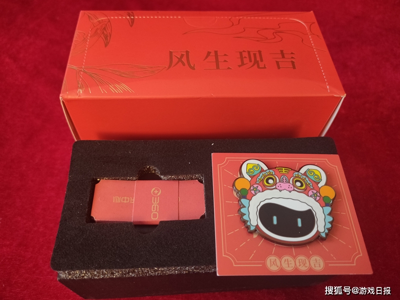最后一个风生现吉主题礼盒,内存小安徽章,徽章的上半部分被设计成了一个小老虎头的形状,红黄白绿四色搭配,颇具收藏价值。
