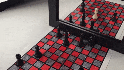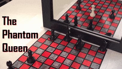 在这个例子中,Pritchard使用了一面镜子来产生复杂的双面变形幻觉。这使Pritchard创造了一个神奇的时刻,在镜子的反射中,棋盘上的皇后似乎凭空出现。