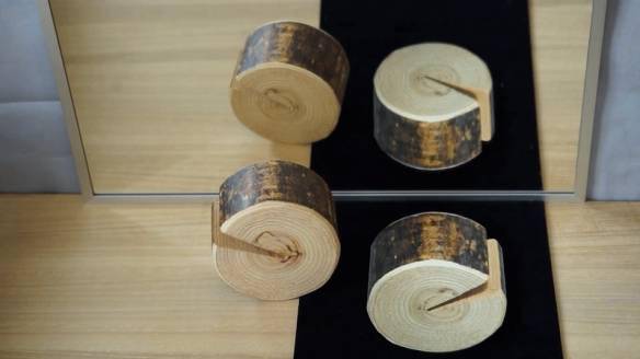 一开始看起来似乎没什么不对,但实际上,镜子里的木墩子与现实中的木墩子,完全不是一个摆放姿态。一个凭借侧面立着,一个凭借切面躺着: