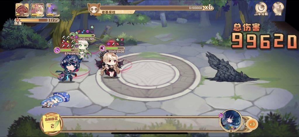 Boss 每回合都会释放一次单体秒杀。1T的单体秒杀由开局自标记的霍斯德丽吃下,卖了。2T的单体秒杀则会被青玉的免死挡下。