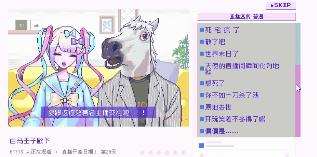 于是,玩家要做的就是扮演一个温柔的“小男友”,在平衡糖糖各项指标的同时,尽可能地安排涨粉较多的直播内容,在30天的期限到来之前让她获得更多的粉丝——如果仅仅是这样,《重度依赖》可能仅仅只是一个有趣的热点小品游戏罢了。