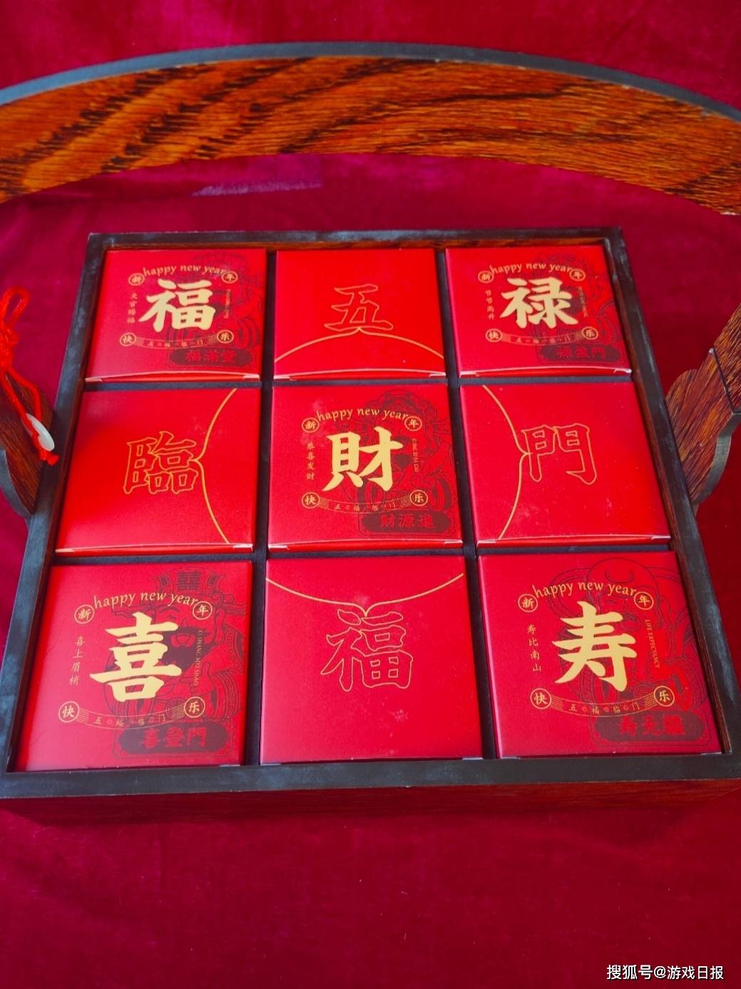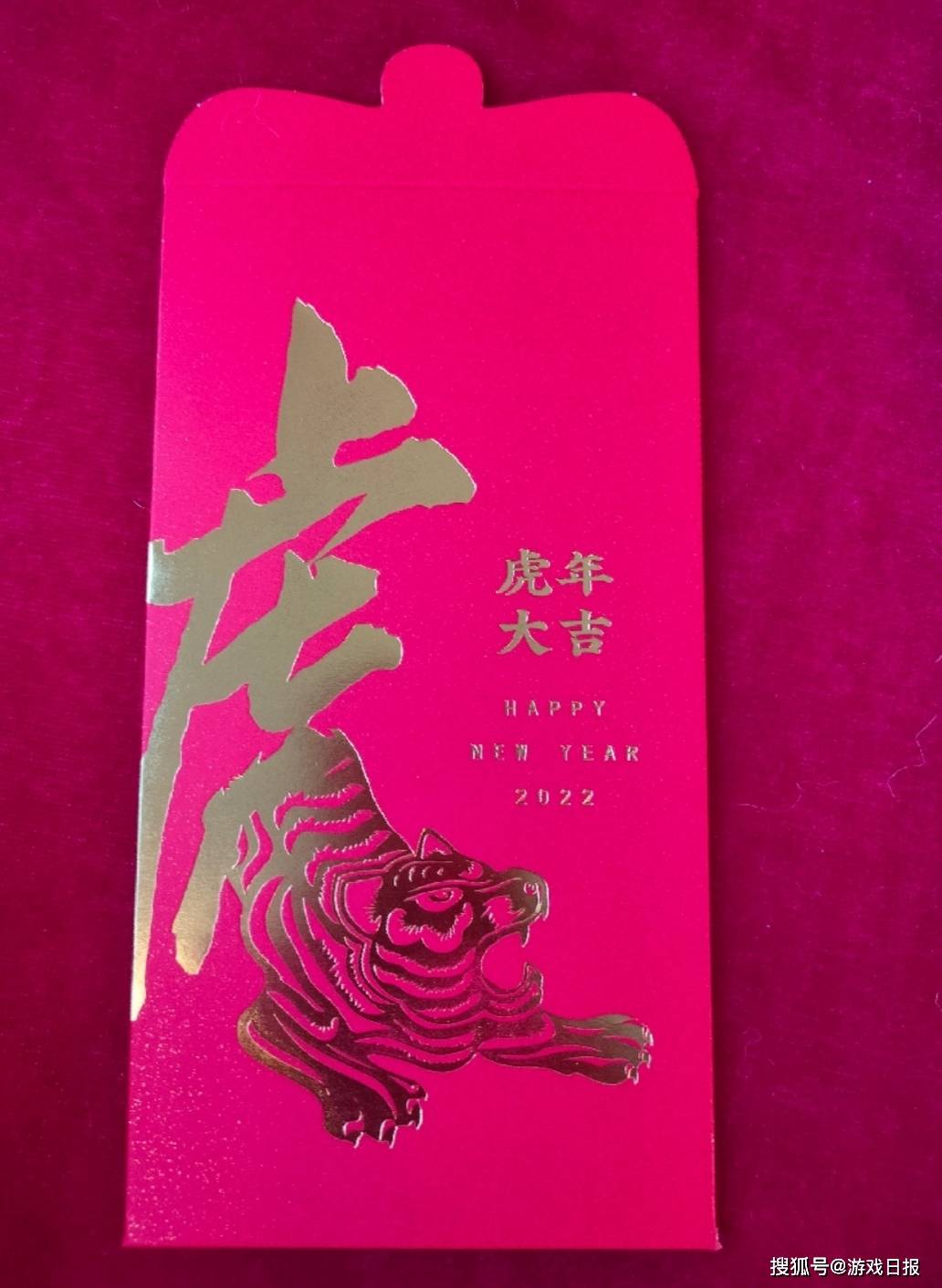礼盒打开就是第一层了,迎面而来的就是一副喜气盈盈的对联,先来上一份传统的祝福“五福献瑞”,猛虎祝福的红包套装,正面金虎盘踞,意寓虎虎生威,还摆出一副和人戏耍的姿态,足够吸睛了,就连红包封口也是像钱包纽扣,非常可爱。