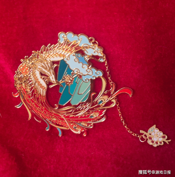 红包上面有大量的花朵图案,繁花似锦的主题很符合新年的美好寓意。金属书签是由凤凰,祥云和山峦三个图案构成的,底下还有一条长长的金属链条,质感不错。