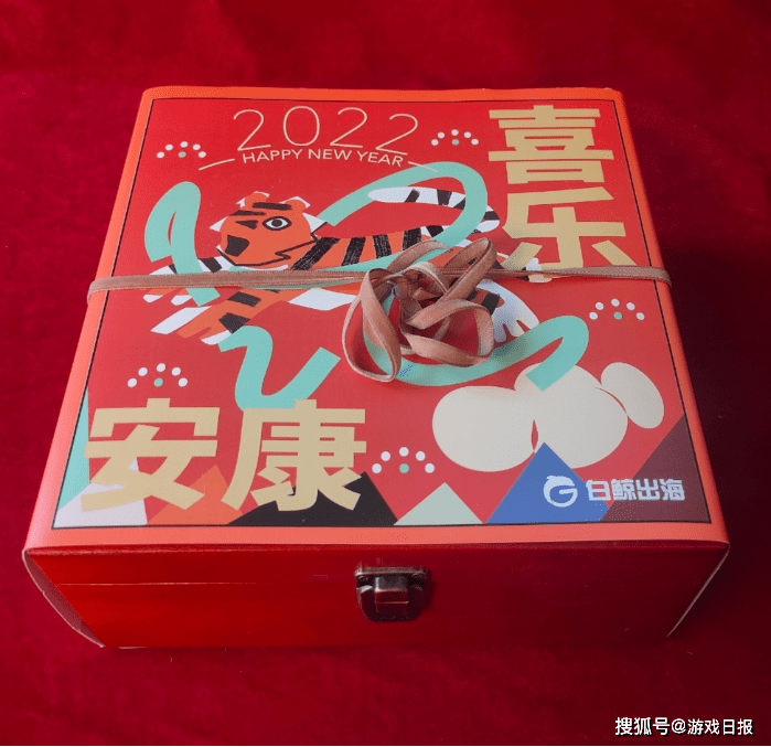 白鲸出海公司的新年礼盒主题是安康喜乐,礼盒上面印有一个画风搞怪的老虎,整体以红色为主,偏复古风,新年喜乐安康全都要有。