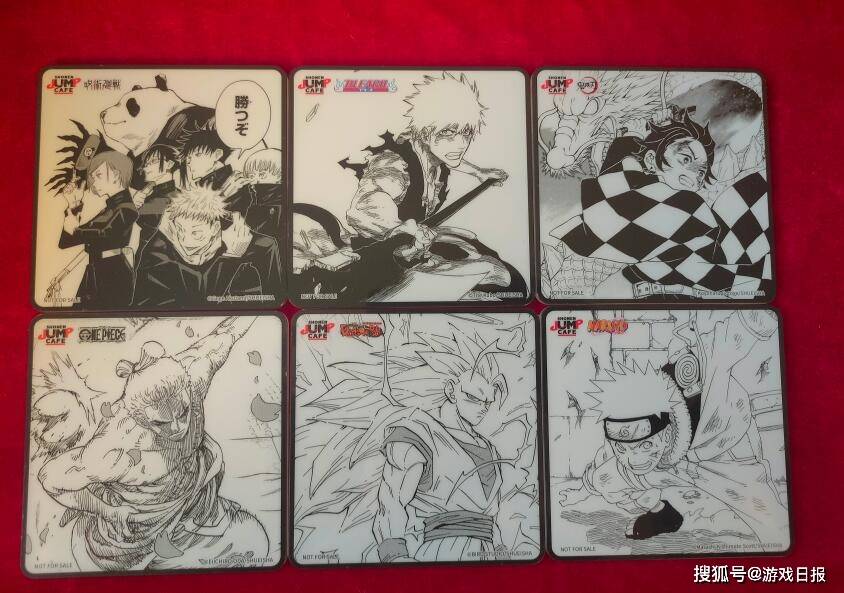 接下来是杯垫跟餐桌垫,上面都画满了经典漫画中的经典人物形象,人物的细节都设计的非常细心,看到这些就仿佛感觉到动漫中很“励志”很“热血”的情节了,尤其是将几部动漫放在一起,格外让人感觉震撼。