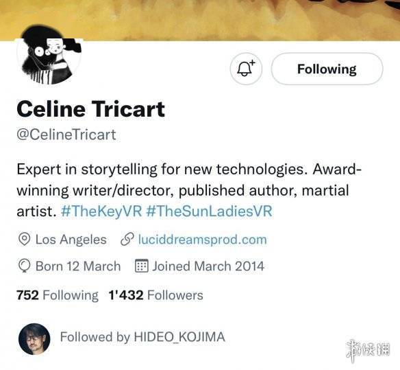 小岛秀夫在社交媒体关注了知名VR专家C%uE9line Tricart