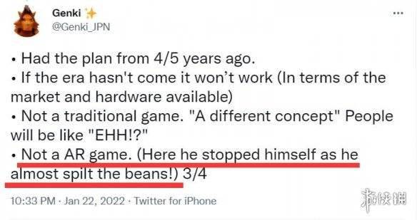 此外另一名用户Genki_JPN称:在1月21日的J-Wave Radio节目上,小岛秀夫曾特地表示他那款有挑战性的新游戏不是AR作品,这时他的神情仿佛说漏了嘴一样(不是AR,那就是VR喽?)另外节目中小岛还说,这款新游戏成本不高,但非常创新,会让玩家很惊喜。