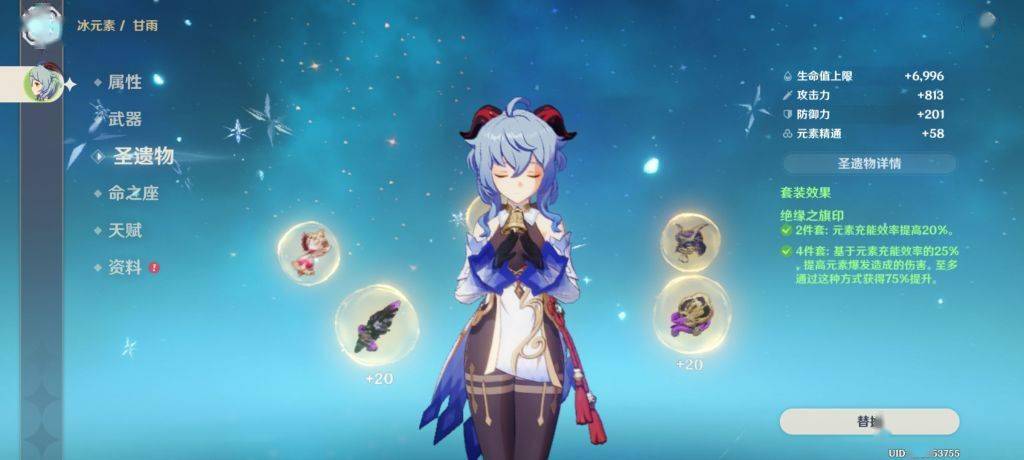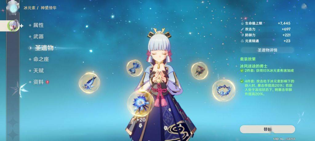 1.主C冰套天目神里 词条比较烂 充能效率是160 可以做到三冰永冻自洽循环(大世界)。