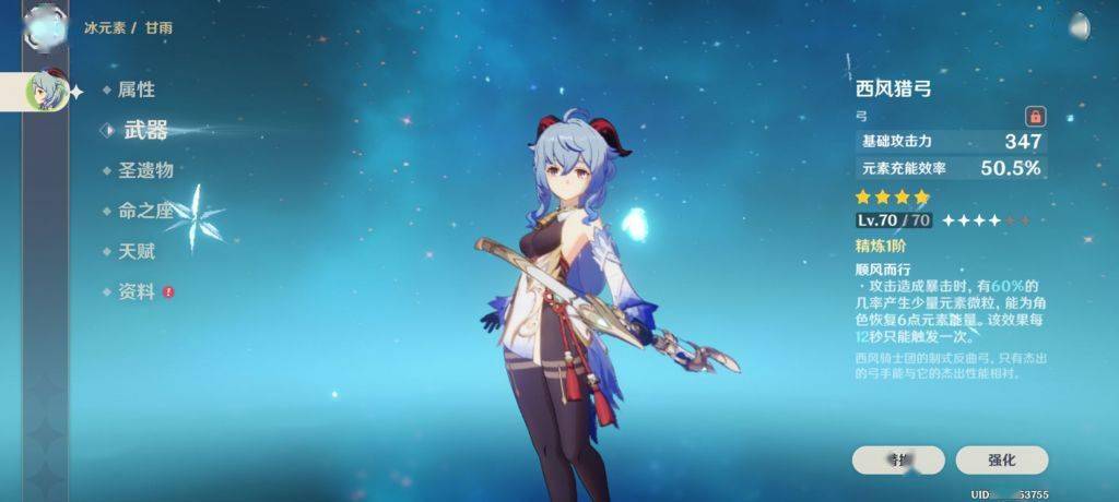 70级天赋有20%的冰元素加成配合高频上冰的大招只需要一把西风弓就能成为充能工具人(猫猫的上位),因为猫猫哪怕是6命拥有元素精通加成,对于永冻队来说也是毫无意义,冻结不吃精通。