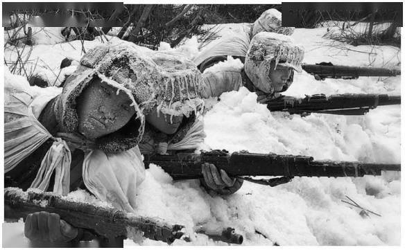 原来,潜伏在这里准备全力阻击的志愿军战士们,已经在酷寒中冻成了一个个冰雕。上百名志愿军的连队,呈战斗队形散开,人人手执武器,怒目注视前方,他们犹如烈火中的“邱少云”,为了战斗的胜利一直保持备战状态,宁死也不脱离战位一步。后来,史密斯派出的前来侦查的美军,也被这不可思议的一幕震惊了。