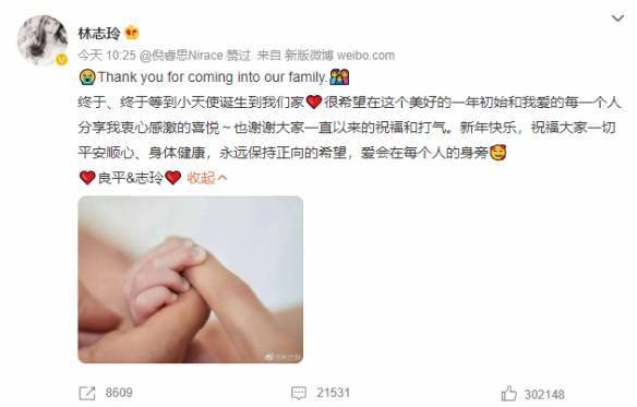 终于、终于等到小天使诞生到我们家很希望在这个美好的一年初始和我爱的每一个人分享我衷心感激的喜悦~也谢谢大家一直以来的祝福和打气。新年快乐,祝福大家一切平安顺心、身体健康,永远保持正向的希望,爱会在每个人的身旁。