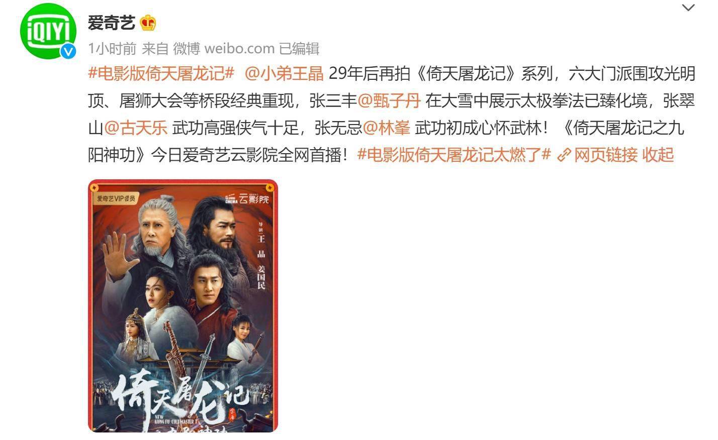 电影《倚天屠龙记之九阳神功》现已在爱奇艺首播