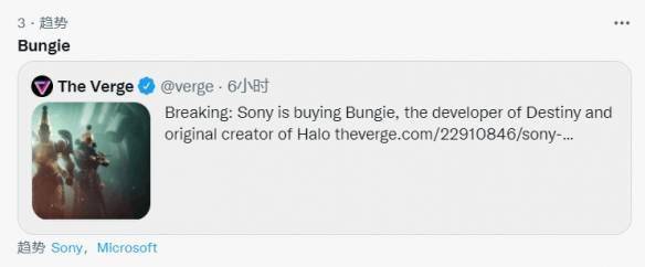 索尼收购Bungie上微博、推特热搜 网友:查询任天堂状态