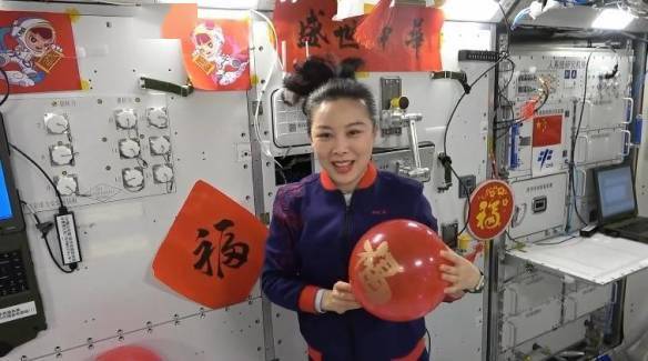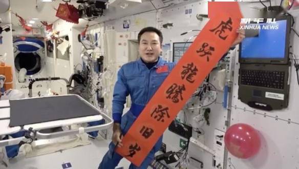 此外,航天员还在空间站贴上了春联,挂上了福字和中国结,春节仪式感满满。