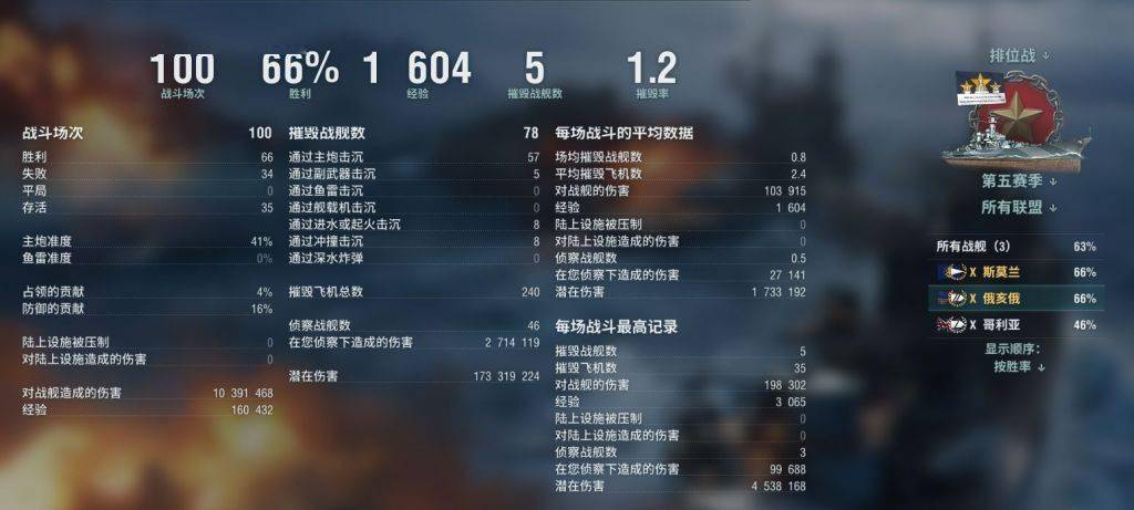 这个是我在亚服排位的数据。总体上来说,俄亥俄和蒙大拿都属于六边形战士,但俄亥俄在多数情况下应该被看做是蒙大拿的强化版。457的主炮加上快速保健使得他能够稳定地抗住很多伤害,并寻找突破点进行冲锋。