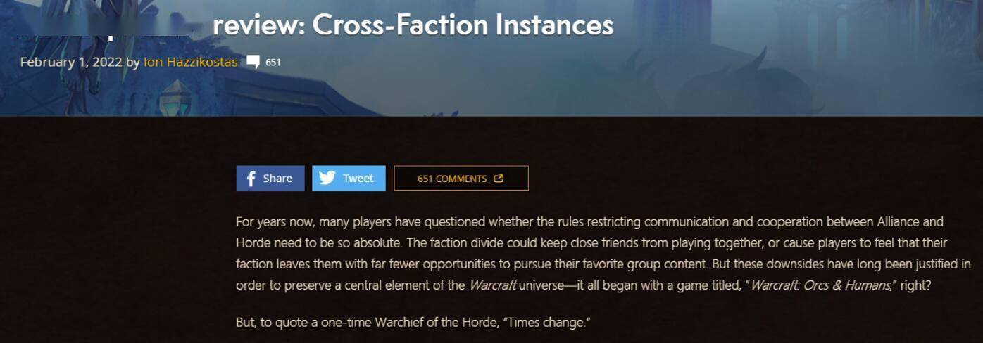 魔兽世界部落联盟从此成历史?暴雪发布蓝贴,开发跨阵营组队