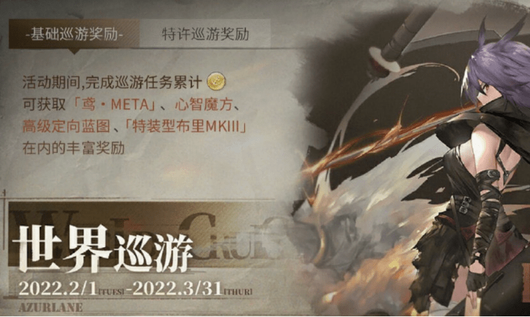 昨日(2月1日),《碧蓝航线》官方在社交平台上发布了一则新公告,宣布「世界巡游」活动正式开启,本次活动时间截止至3月31日23:59。活动期间,当巡游达到指定进度时,玩家可以免费领取含鸢·META、特装型布里MKIII等奖励。