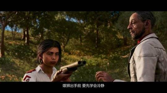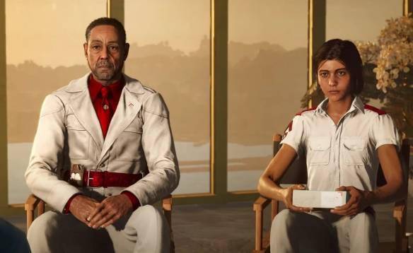 阿育应该也明白了《孤岛惊魂5》的问题在哪儿了,在《孤岛惊魂6》做出了不少应对,比如强化演出的部分,安东·卡斯蒂约应该是《孤岛惊魂》系列历史上露脸最多的封面反派了,大概每个个把小时,你就能看到他带着儿子迭戈在过场里出现,用“雄狮”的方式教导如“绵羊”一般的儿子统治和管理雅拉人,而迭戈有些懦弱的形象,也更衬托出了安东的霸气枭雄和魔怔独裁者的形象。